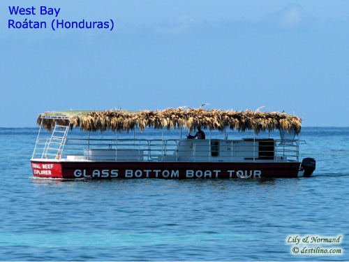 Près de l'hôtel Henry Morgan, il y a pour les amateurs de vies marines sans se mouiller, un bateau glass bottom. Il s'agit d'un bateau où les gens s'installent confortablement (air conditionné!) sous le niveau de la mer devant de grands hublots. Le bateau longe la barrière de corail permettant aux gens de voir ce que l'on voit la tête dans l'eau. Une alternative!