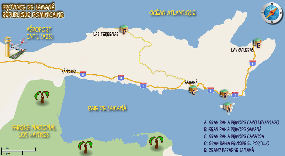 Cliquer ICI pour voir un plan de la péninsule de Samaná avec les hôtels visités.