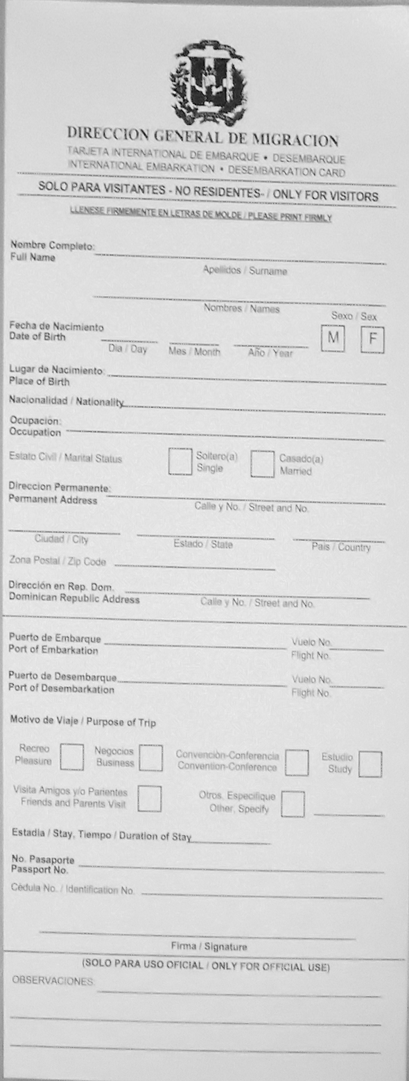 Le passeport n'est pas obligatoire en République dominicaine (acte de naissance de l'état civil avec deux cartes avec photo obligatoire si vous ne possédez pas de passeport).