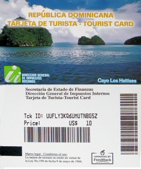 10$ USD par personne. On nous remet un coupon àbord de l'avion en direction de la République Dominicaine.